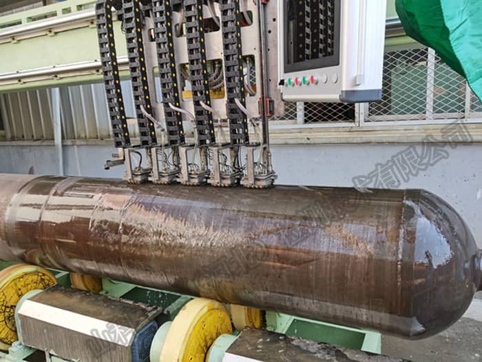 長(zhǎng)管拖車(chē)用大容積鋼制無(wú)縫氣瓶由于長(zhǎng)度和體積都較大,如果采用接觸法手工探傷,不僅探傷效率低下,還會(huì)因?yàn)?/div>